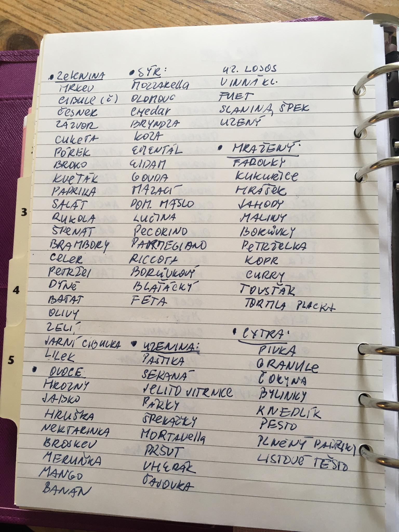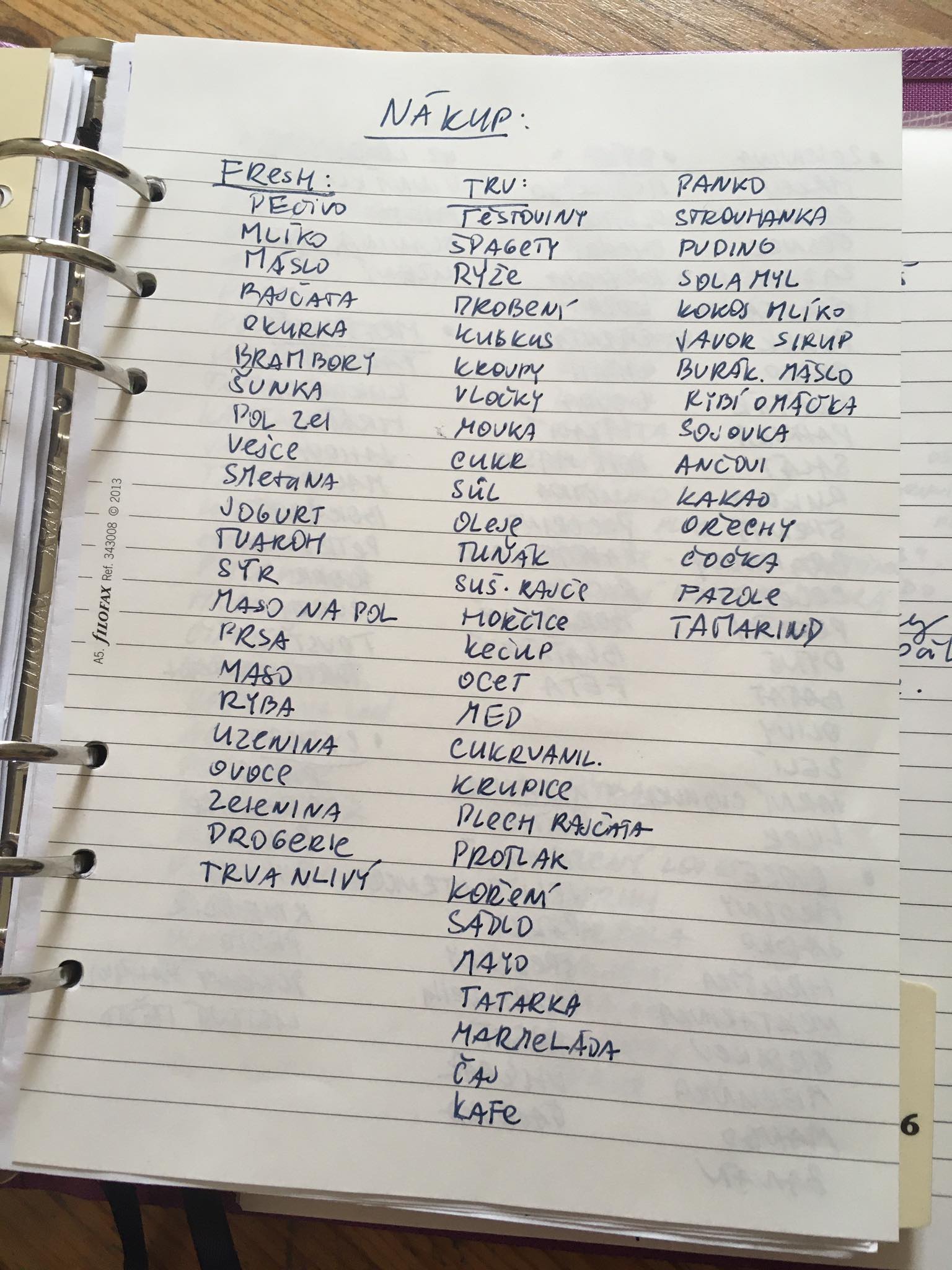 Pak si vezmu svuj mega seznam trvanlivych veci, co bych chtela mit doma furt. Projedu ho a doplnim, co se za ten tyden spotrebovalo.