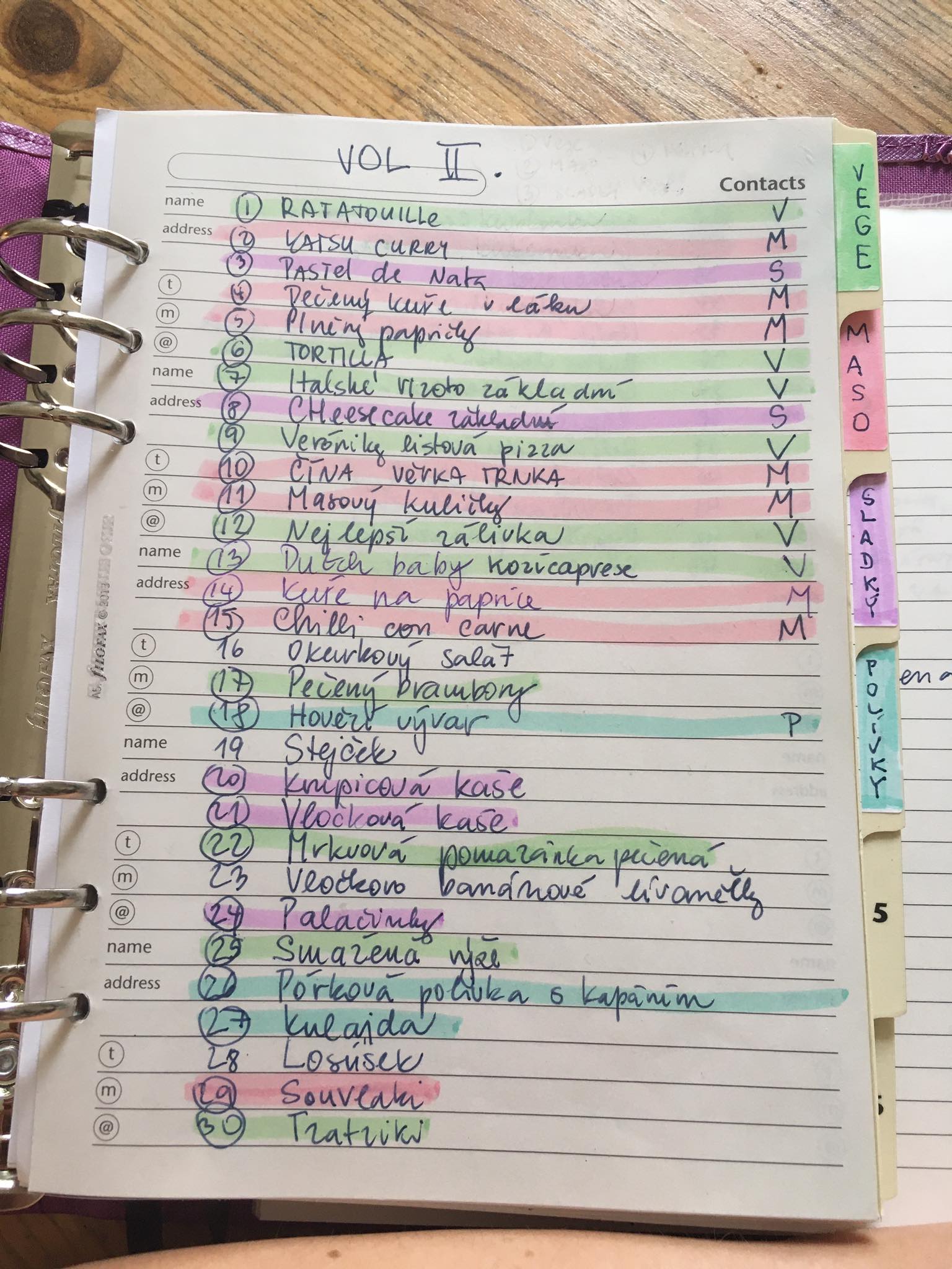 Kdyz jdu nakupovat, napisu si par hlavnich jidel z moji kucharky. Podle receptu si projedu suroviny a napisu si na nakupni seznam vse, co nemam.